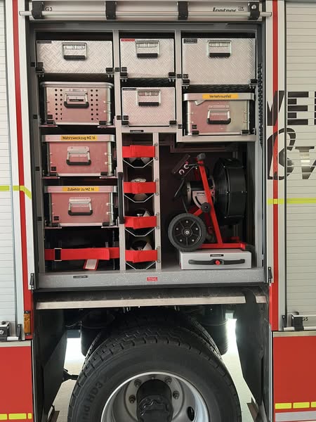 Ladeerhaltungen. Es können sich 2 Trupps bereits während der Fahrt mit Atemschutzgeräten ausrüsten und somit ohne Zeitverzug zum Einsatz kommen.