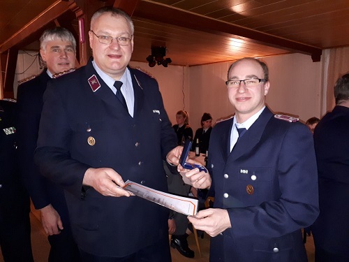 - Für 10 Jahre aktiven Dienst in der Freiwilligen Feuerwehr wurde der Kamerad Stefan Beckert mit dem Feuerwehr-Ehrenzeichen des Freistaates Sachsen der Stufe Bronze geehrt.